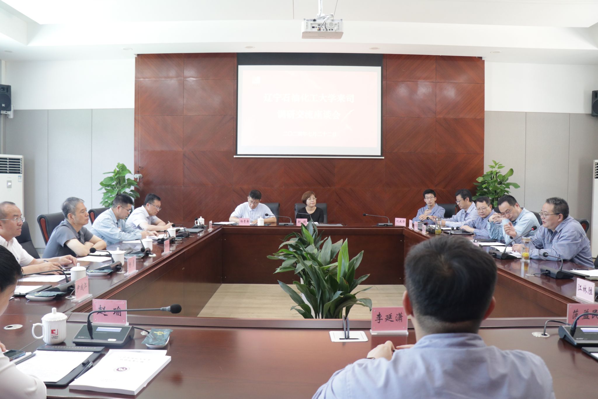 郭长义一行首先参观了安庆石化炼化区中心控制大厅和厂史馆,随后双方座谈交流。刘晓华对我校一行的到来表示热烈欢迎,对学校长期以来向安庆石化输送了大量优秀毕业生、助力企业发展表示感谢。我校有近百名校友在安庆石化效力,十余人进入中层以上技术和管理队伍。刘晓华还介绍了安庆石化的生产和经营以及未来转型发展情况,他非常希望有更多“抚油”学子加入安庆石化。郭长义介绍了此行目的在于专程拜访企业、看望广大校友、寻求新的合作,同时热烈祝贺安庆石化建厂50周年。他高度评价安庆石化为经济社会发展贡献重大、科技立企强企快速发展、思想文化建设特色鲜明成效显著,并衷心感谢安庆石化历年来对我校毕业生的培养。郭长义主要从锚定建设特色鲜明的一流高水平应用型大学一个目标、深化“五项改革”、实施“四大战略”三个层面介绍了学校,并介绍了学校近年来在辽最低录取线不断攀升、毕业生就业率始终居辽宁省前茅为标志的显著办学成绩,以及我校将在博士学位授予单位争列、国家级科学技术奖、国家级教学成果奖三个方面寻求突破的攻坚目标。郭长义希望与安庆石化在毕业生吸纳、科研合作、员工培训等方面进一步深化合作,并诚挚邀请刘晓华和各位领导常来学校视察走访、商谈合作。刘晓华给予热情回应,表示将加大与学校的合作力度,并约定于九月来校签订合作协议。公司党委组织部、人力资源部、发展规划部、生产计划部、炼油事业部、党群工作部负责人出席,我校优秀校友代表李胜利、徐思伟、范宜俊、赵云怒、程驰等参加座谈。周洪波、李胜利、徐思伟等分别从企业和校友角度畅谈了入职后成长体会,并为母校进一步发展壮大提出建议。