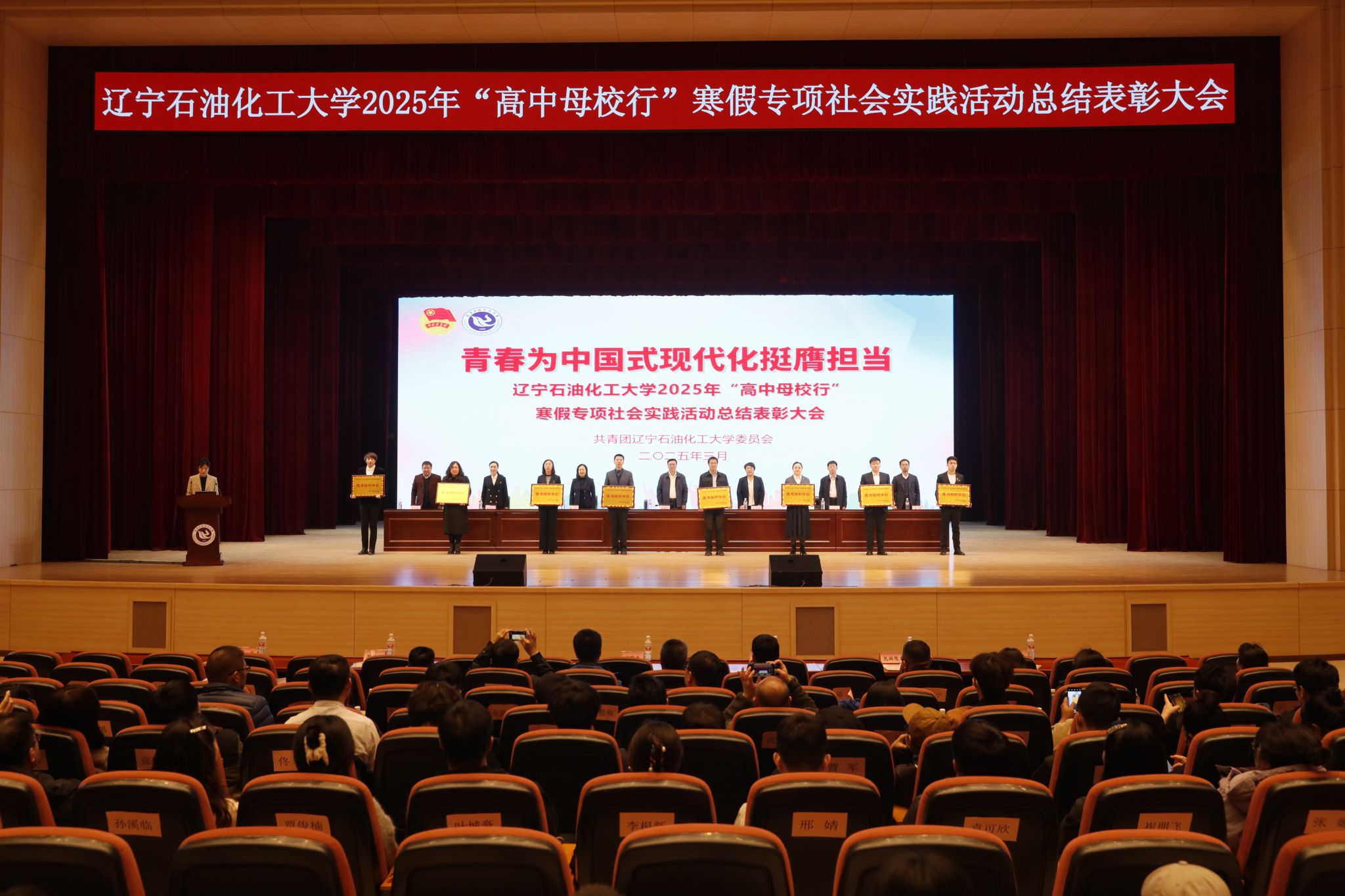 近日,学校共青团召开2025年“高中母校行”寒假专项社会实践活动总结表彰大会,校党委副书记钟俊生,宣传部、统战部、学生工作部、团委、教务处、研究生工作部部门负责人,各学院主管学生工作副书记,校、院两级专兼职团干部,学生干部及优秀团员青年代表1100人参与活动。校团委实践部部长敖雪洋主持会议。