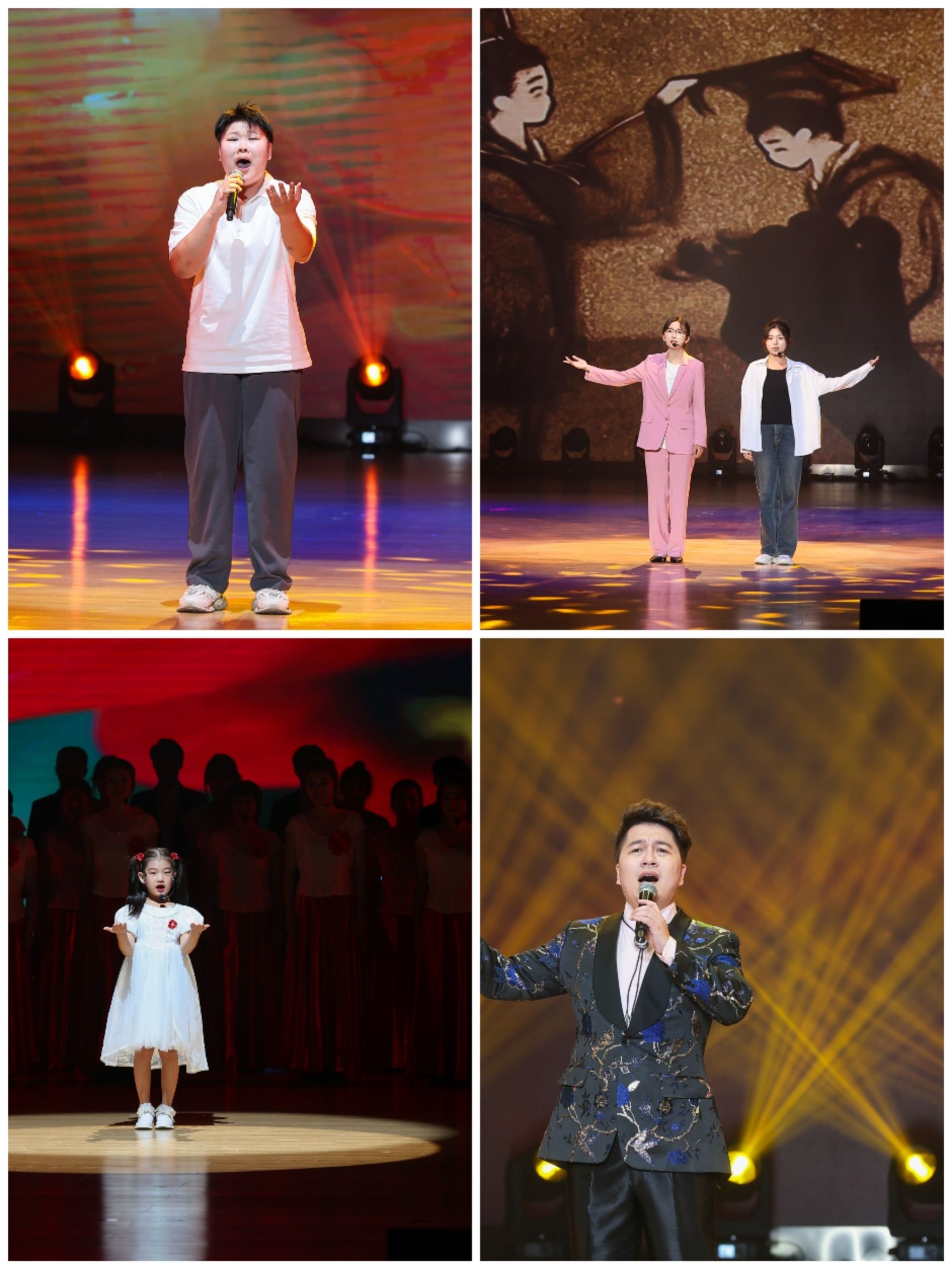 晚会第一篇章“心有大我 情怀信仰”,40位师生表演的舞蹈《桃李芬芳》为晚会带来了一场独一无二的舞蹈盛宴,获得了全场一致好评;情景剧《老师,您好》用剧情传递感情,为整台晚会增添亮点,该剧以我校教师为原型,深情讴歌了教师群体的心有大我、情怀信仰。体育学院卢宇卓同学带来的歌曲《烛光里的妈妈》与情景剧相呼应,真挚的情感拨动了在场每一位观众的心弦。